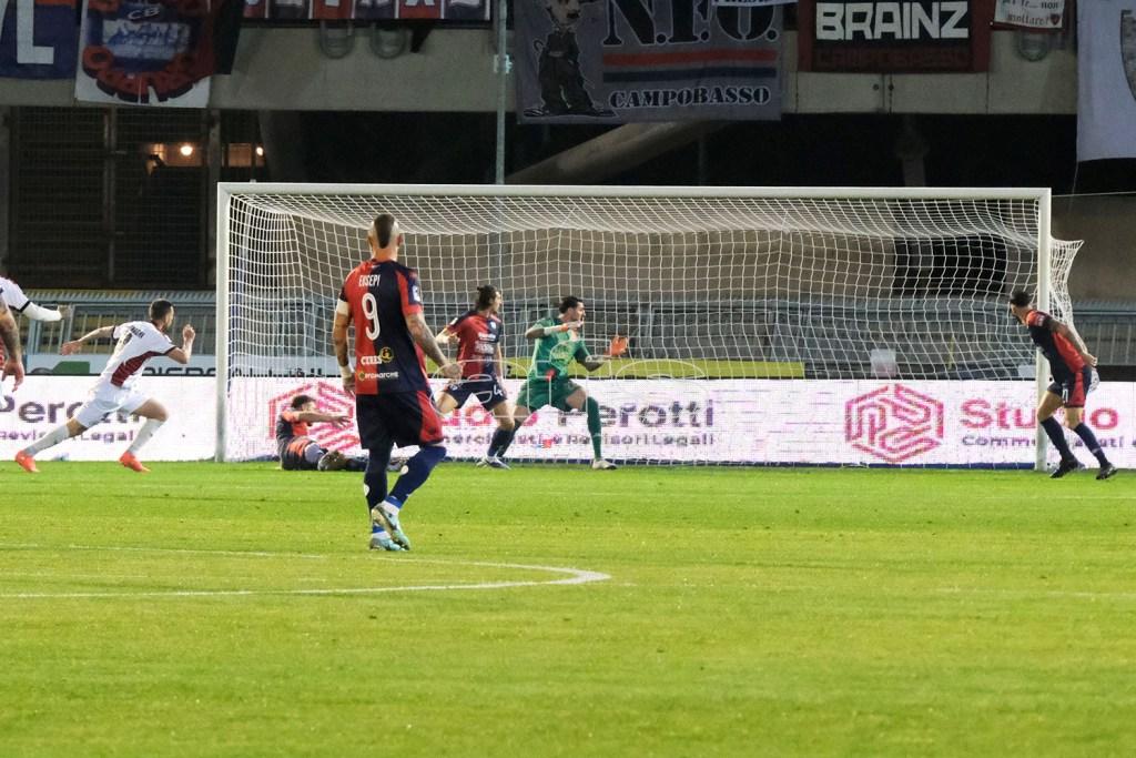 L’illusione di una svolta dura appena dieci minuti. Al fischio d'inizio, il Campobasso prende subito in mano le redini del gioco, trovando il vantaggio grazie a Simone Magnaghi. L'attaccante molisano è il più lesto a risolvere una mischia furibonda nell'area piccola, trafiggendo Cultraro e gelando i cinquemila del "Riviera delle Palme".