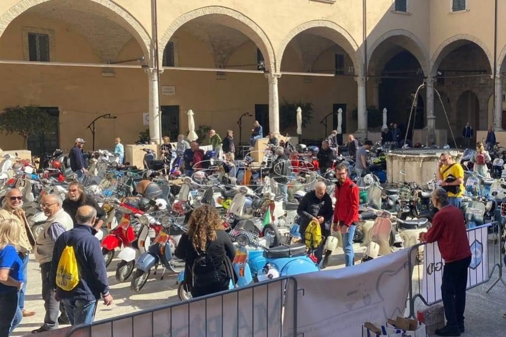 Un lungo applauso ha accolto il Palio della Quintana di luglio, realizzato dall'artista ascolano Gabriele Viviani e svelato ieri mattina nella sala della Vittoria della Pinacoteca. Andrà al vincitore della Giostra che si disputa sabato 12 luglio in notturna al campo dei giochi dello Squarcia. L'autore, dopo aver attentamente studiato l’iconografia della tavola trecentesca di Fracescuccio di Cecco Ghissi conservata nella chiesa di Sant’Agostino, ha elaborato una immagine di grande suggestione che vede al centro la figura solenne della Vergine sotto il cui mantello azzurro trovano riparo i cavalieri giostranti. Dal cielo cadono gocce di sangue purpureo che simboleggiano i mali dell’umanità dai quali la protezione della Madonna preserva coloro che le sono fedeli ed in questa scelta iconografica l’artista mostra di essersi ispirato alle tavole quattrocentesche raffiguranti la Madonna della Misericordia che protegge dai flagelli  provenienti dal cielo quanti si riparano sotto il suo manto.
